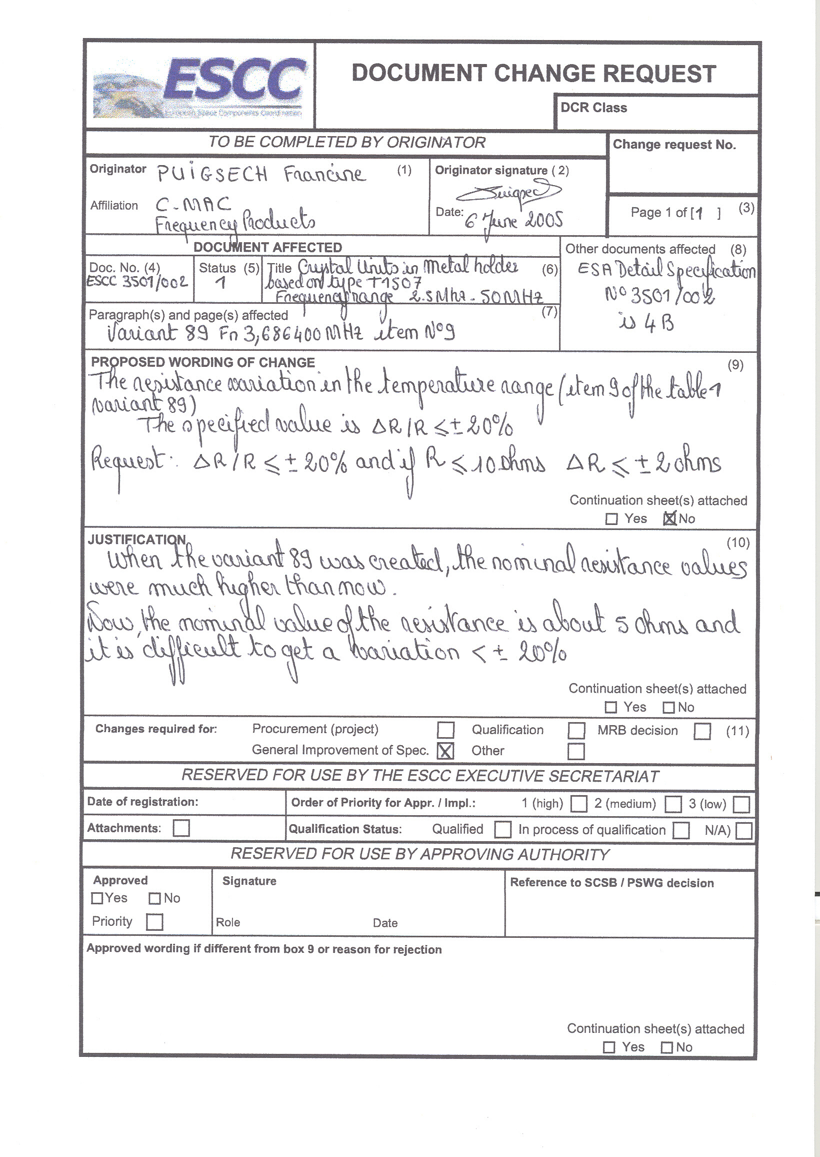 Other DCRs affecting these documents: